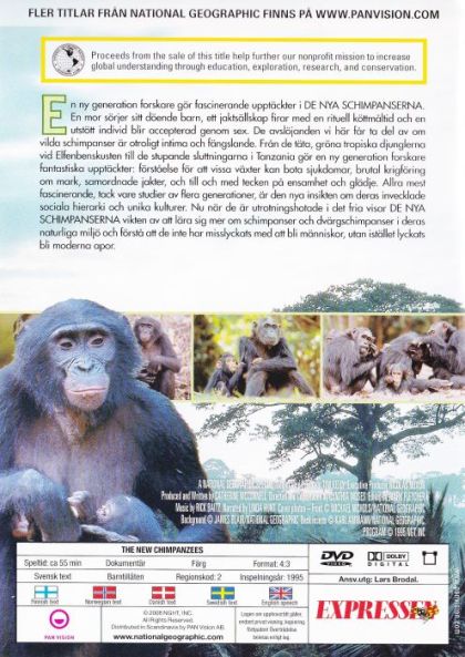 Allra mest fascinerande, tack vare studier av flera generationer, är den nya insikten om deras invecklade sociala hierarki och unika kulturer. Nu när de är utrotningshotade i det fria visar DE NYA SCHIMPANSERNA vikten av att lära sig mer om schimpanser och dvärgschimpanser i deras naturliga miljö och förstå att de inte har Misslyckats med att bli människor, utan istället lyckats bli moderna apor.