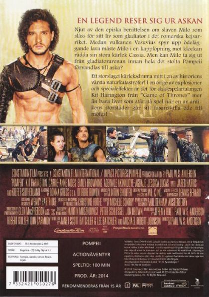 Set in 79 A.D., POMPEII tells the epic story of Milo, a slave turned invincible gladiator who finds himself in a race against time to save his true love Cassia, the beautiful daughter of a wealthy merchant who has been unwillingly betrothed to a corrupt Roman Senator. As Mount Vesuvius erupts in a torrent of blazing lava, Milo must fight his way out of the arena in order to save his beloved as the once magnificent Pompeii crumbles around him.