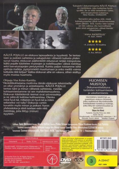 "Henkilökohtaisena motiivina tämän elokuvan tekemiselle on ollut ymmärrys ja anteeksianto. ISÄLTÄ POJALLE kertoo isäni ja minun välisestä suhteesta, meidän kohtaamisestamme tai sen mahdottomuudesta. Elokuvan käsittelemät teemat ovat universaaleja ja ne pätevät kaikissa kulttuureissa. Olenko minä hyvä isä, millainen on hyvä isä ja miten sellaiseksi voi tulla? Elokuvaa varten kuvattiin myös minun ja poikani Aaron yhdessäoloa ja siinä tuodaan esiin niitä ristiriitoja, joita liittyy (minun) isyyteen."