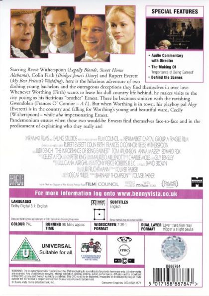 Two young gentlemen living in 1890s England use the same pseudonym ('Ernest') on the sly, which is fine until they both fall in love with women using that name, which leads to a comedy of mistaken identities.