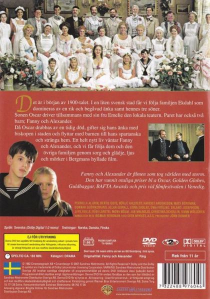 Då Oscar drabbas av en tidig död, gifter sig hans änka med biskopen i staden och flyttar med barnen till hans spartanska och stränga hem. Ett helt nytt liv väntar Fanny och Alexander, och vi får följa dem och den övriga familjen genom sorg och glädje, ljus och mörker i Bergmans hyllade film.