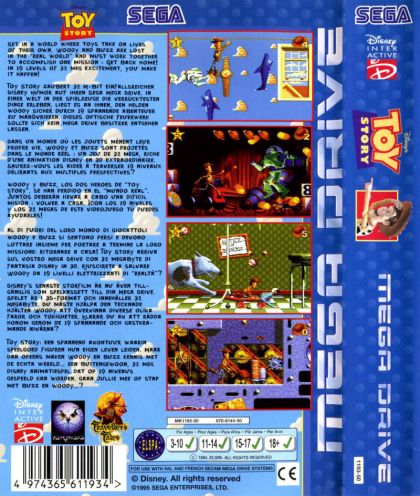 3-D graphics blast you to infinity and beyond! Ride a rampaging Rex through a sea of hostile toys! Defeat squeeze-toy aliens and avoid the evil CLAW! Ward off mutant toys with karate-chop Buzz! But whatever you do, don't become dog food! Humongous characters and sharper-than-life 3-D. All on an outrageous 32 Megs!