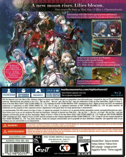Evolved Servan Actions: Servans return in Nights of Azure 2 with further enhanced gameplay! Two new Servan types, Striker and Tricker have been introduced - with Striker Servans transforming into weapons for a short time to offer greater attack damage, and Tricker Servans offering special actions in the over world, such as the ability to glide across gaps in a dungeon.