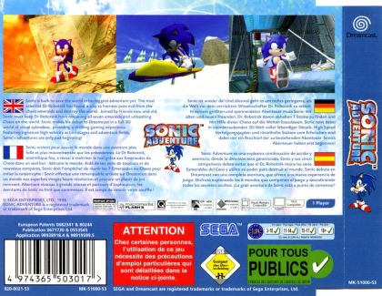 Sonic is back to save the world in his biggest adventure yet. The mad scientist Dr. Robotnik has found a way to harness pure evil from the chaos emeralds and destroy the world. Joined by friends new and old, Sonic must keep Dr Robotnik from obtaining all seven emeralds and unleashing Chaos on the world. Sonic makes his debut to the Dreamcast in a full 3D world of visual splendour, providing a thrilling experience. Featuring signature high velocity action stages and adventure fields, Sonic's adventures are only just beginning!