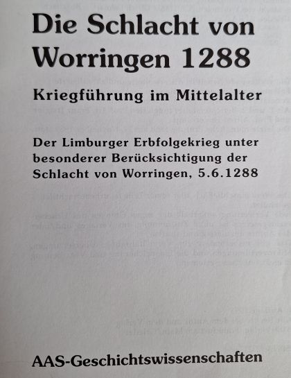 Überarbeitung der Dissertation des Autors (Doktorarbeit) – Universität Trier, 1989 unter dem Titel: Kriegsführung Im Mittelalter – der Limburgische Erbfolgekrieg Unter Besonderer Berücksichtigung Der Schlacht Von Worringen, 5.6.1288.