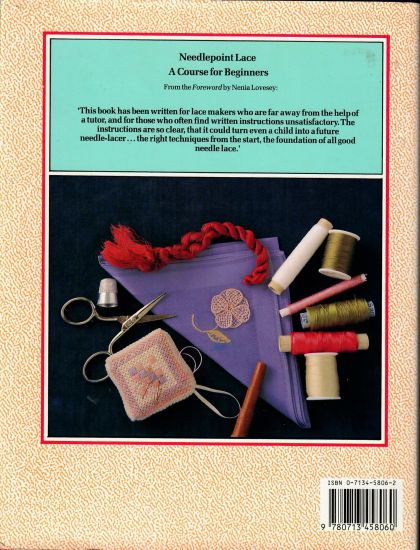 A progressive course for those wishing to take up needlepoint lace for the first time or those wishing to improve on basic techniques. It includes information on equipment and details on the making of a simple piece - the "daisy" motif, a lace pillow and stitch sampler. Stiches and threads are described and explained with instructions, diagrams and creative ideas. There is a section on decorative finishes and how to apply them and further information on design and colour to encourage the lacemaker to experiment and develop ideas. The author was the winner of the Batsford Lace Prize in 1986.