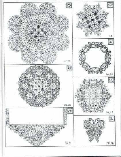 Lovely collars, mats, butterfly, swan, floral motifs included.