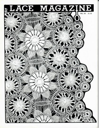 Various issues of Lace Magazine, in various stages of quality. Contain mostly bobbin lace but also some Tenerife, Reticella, and lace history pieces.