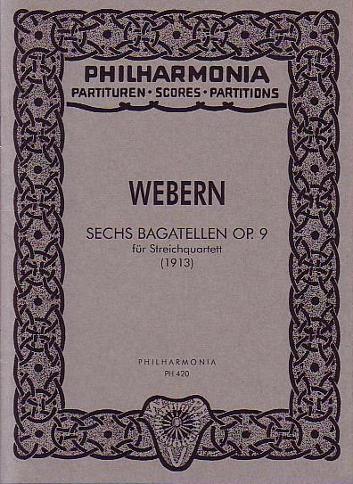 6 Bagatelles, Op 9, String Quartet by Webern. Philharmonia No.420, Miniature Score. Lightly Used Condition. Book size approximately 5x7 MiniboxNNN