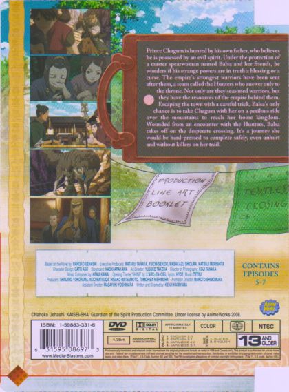 Prince Chagum is hunted by his own father, who believes he is possessed by an evil spirit. Under the protection of a master spearwoman named Balsa and her friends, he wonders if his strange powers are in truth a blessing or a curse. The empire's strongest warriors have been sent after them, a team called the Hunters who answer only to the throne. Not only are they seasoned warriors, but they have the resources of the empire behind them. Escaping the town with a careful trick, Balsa's only chance is to take Chagum with her on a perilous ride over the mountains to reach her home kingdom. Wounded from an encounter with the Hunters, Balsa takes off on the desperate crossing. It's a journey she would be hard pressed to complete safely, even unhurt and without killers on her trail.