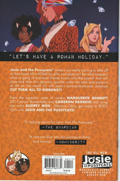 "Three Cats by a Fountain." The Pussycats' careers really start to take off as they head off to Rome for glitz and glamour! But what happens when a gang of diamond thieves bursts onto the scene? And will Josie and Alan M's dynamic sparkle under the heat and pressure of life on the road? Or will Josie's hard-as-diamonds ambition cut them all to ribbons?