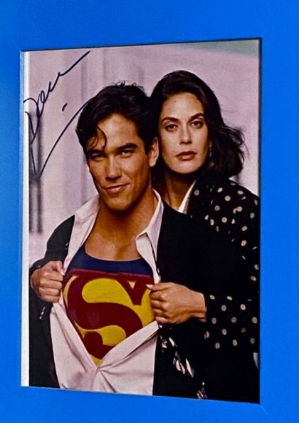 Lois and Clark: The New Adventures of Superman Publicity Photo Autographed by Dean Cain (c. 1990s). Color 8" x 10" publicity photo of Dean Cain as Clark (Superman) Kent and Teri Hatcher as Lois Lane, from the 1993-97 ABC-TV series. Signed by Mr. Cain in blue Sharpie marker. Excellent condition. No COA included.