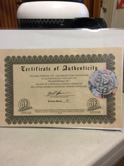 ****DF PUT THE WRONG COA IN IT. THE COA INCLOSED IS FOR SPIDER-WOMAN #1****
