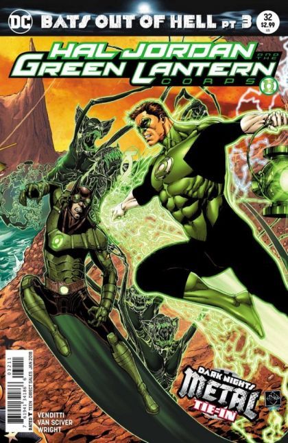 A METAL tie-in! "BATS OUT OF HELL" part two! The Dawnbreaker descends on Coast City, ready to suck its light away before moving on to the rest of our world. Backed up by the power of the Justice League, Hal Jordan stands ready to stop the perverted Lantern-until the Batman Who Laughs steps out of the shadows.