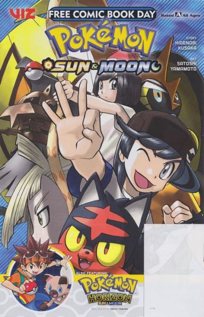 Pokémon Horizon: Akira's summer vacation in the Alola region heats up when he befriends a Rockruff with a mysterious gemstone. Together, Akira hopes they can achieve his dream of becoming a Pokémon Trainer and learning the amazing Z-move. But first, Akira needs to pass a test to earn a Trainer Passport. This becomes even more difficult when Rockruff gets kidnapped! Pokémon Sun & Moon: Sun dreams of money. Moon dreams of scientific discoveries. When their paths cross with Team Skull, both their plans go awry! All-Ages.