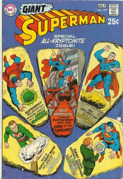 A colony of giant ants, mutated by a nuclear war on another planet, comes to Earth with a warning, and Superman uses Red Kryptonite radiation to give himself an ant's head in order to communicate with them.Secret Of Kryptonite Six