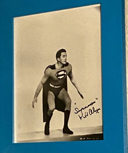 Superman Serial Publicity Photo Autographed by Kirk Alyn (undated). Actor Kirk Alyn, who starred as the Man of Steel in two movie serials (Superman, 1948, and Atom Man vs Superman, 1950) signed this reissue 8" x 10" glossy publicity photo. Excellent condition. No COA included.