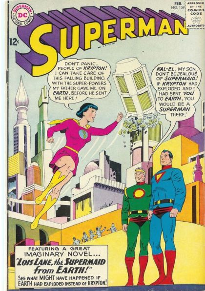 This imaginary tale depicts a reversal of fortunes, in which Lois Lane is the sole survivor of Earth, and she arrives on Krypton complete with superpowers.