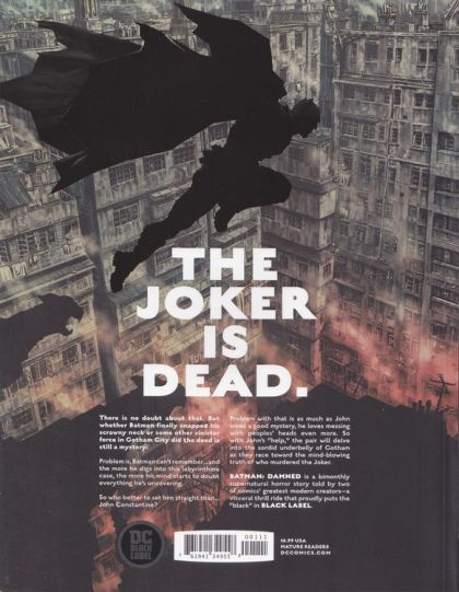 DC BLACK LABEL, the highly anticipated new imprint from DC Comics, starts here! The Joker is dead. There is no doubt about that. But whether Batman finally snapped his scrawny neck or some other sinister force in Gotham City did the deed is still a mystery. Problem is, Batman can't remember... and the more he digs into this labyrinthine case, the more his mind starts to doubt everything he's uncovering. So who better to set him straight than... John Constantine? Problem with that is as much as John loves a good mystery, he loves messing with people's heads even more. So with John's "help," the pair will delve into the sordid underbelly of Gotham as they race toward the mind-blowing truth of who murdered The Joker. BATMAN: DAMNED is a bimonthly super-natural horror story told by two of comics' greatest modern creators-a visceral thrill-ride that proudly puts the "black" in BLACK LABEL.