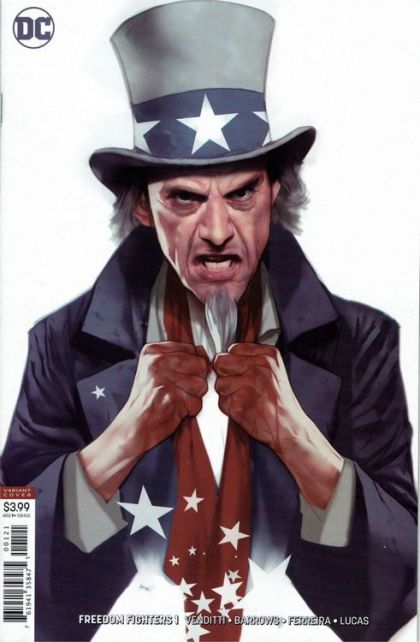 Line up for this all-new maxiseries set on Earth X, where the Nazis won World War II! Twenty years after invading and occupying America, Germany wiped out all metahuman resistance, including the original Freedom Fighters. Fast-forward to the present day, and a new team of Freedom Fighters emerges to challenge the Nazi occupation once again. But if they're to have any chance of victory, they're going to need Uncle Sam-who disappeared after his original team was killed. The 12-part epic "Death of a Nation" storyline kicks off here!