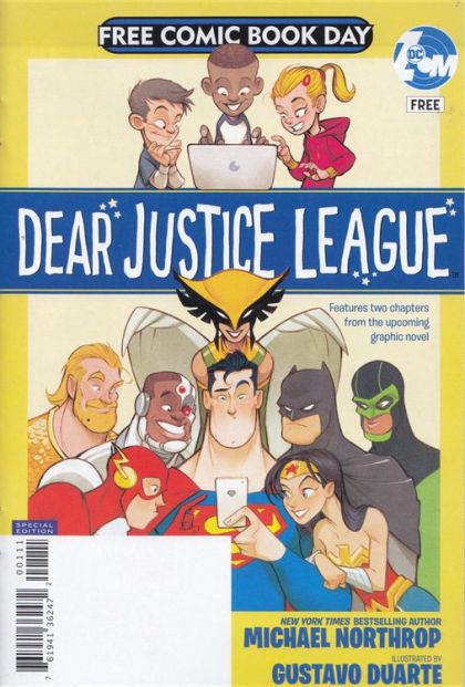 The greatest Super Heroes in the DC universe, the Justice League, answer mail from their biggest fans--kids! Courtesy of Michael Northrop, the New York Times bestselling author of TombQuest, and artist Gustavo Duarte, DC's iconic Super Heroes find time to answer questions both big and small when they are not busy saving the world. Their honest and humorous responses will surprise and delight readers of any age, as it turns out that being a superhero is not too different from being a kid. This FCBD special edition features two chapters starring Superman and Hawkgirl from DC Zoom's upcoming original graphic novel, DEAR JUSTICE LEAGUE. This title measures 5.5" x 8". Rating: All Ages