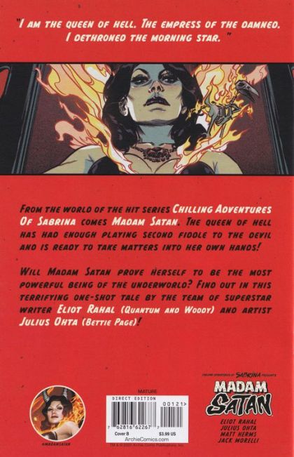From the world of the hit series CHILLING ADVENTURES OF SABRINA comes MADAM SATAN. The Queen of Hell has had enough playing second fiddle to the Devil himself and is ready to take matters into her own hands! Will Madam Satan prove herself to be the most powerful being of the Underworld? Find out in this terrifying one-shot tale!