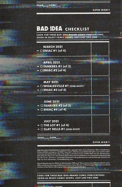 But how will I know what Bad Idea's comics look like, sound like, taste like?," your shoppers ask. Ponder no more! With Bad Idea's handy-dandy CRASS PROMOTIONAL MODULE v1, every single reader in your store can get 16 (yes, SIXTEEN!!!) totally free pages of content previewing your new favorite publisher's initial salvo of pullbox-pummeling titles, including: