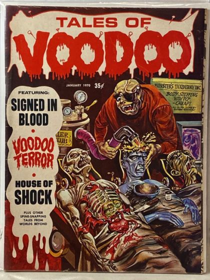 | Grader Notes | Tales of Voodoo #V3 #1 Publisher: Eerie Publications Store Date: January 10, 1970 Cover Price: $0.35 Editing: Carl Burgos, Ezra Jackson Pencils: Chic Stone Inks: Chic Stone GCIN: 339292 |