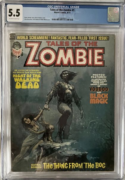 | Grader Notes | CGC Cert # 4010049003 Title Tales of the Zombie Issue 1 Issue Date 8/73 Issue Year 1973 Publisher Marvel Comics Grade 5.5 Page Quality OFF-WHITE TO WHITE Grade Date 04/03/2023 Grade Category Universal Art Comments Steve Gerber story, Boris Vallejo cover John Buscema, Tom Palmer & Pablo Marcos art Grader Notes spine stress lines breaks color small crease right bottom of front cover breaks co small crease right top of front cover breaks color |