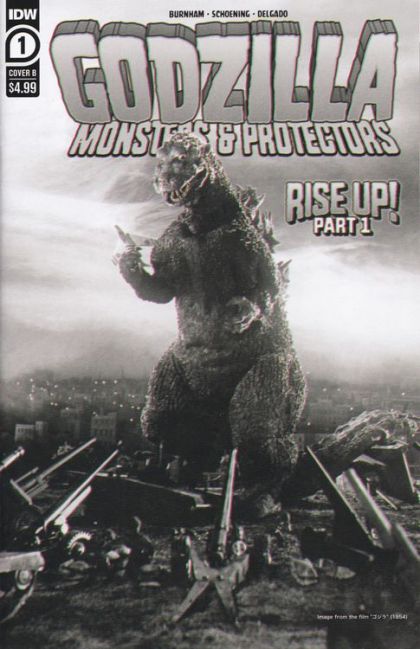 Godzilla roars back into comics! "Rise Up!" Part 1: When a coldly single-minded businessman uses an untested element to create clean energy for a profit, he inadvertently awakens the beast from the deep--Godzilla! Sensing the harm the new energy poses to the planet, Godzilla attacks the heart of the problem--humankind! It will be up to three intrepid middle-school students--with a little magic help from Infant Island--to show Godzilla that not all humans are bad... and that there is still hope for Planet Earth. Reuniting the blockbuster creative team of writer Erik Burnham, artist Dan Schoening, and colorist Luis Antonio Delgado (Ghostbusters), Godzilla: Monsters & Protectors promises to romp and stomp fans--old and new--of the greatest kaiju ever like never before!