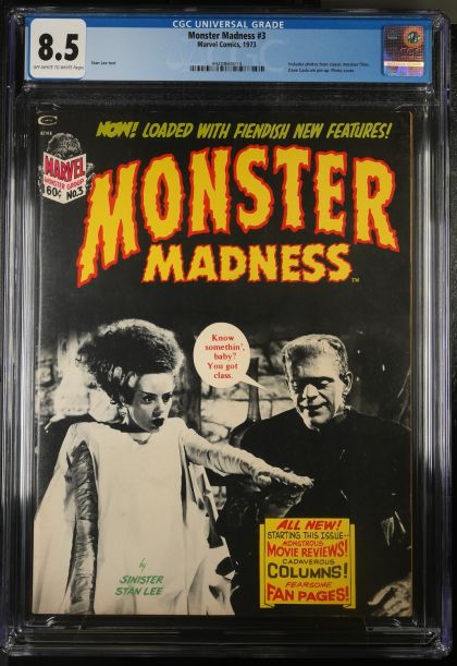| Grader Notes | Monster Madness #3 × Publisher Marvel Store Date October 1, 1973 Cover Price $0.60 Issue Notes Stan Lee text Includes photos from classic monster films. Dave Cockrum pin-up. Photo cover. GCIN 1027644 |