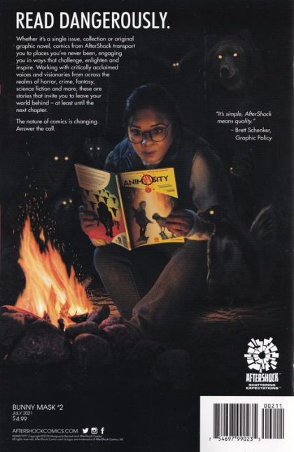 Life explodes around Tyler Severin as depictions of Bunny Mask begin eerily appearing in his life - even as the strange and deadly creature herself walks the earth once more. Meanwhile, as Tyler's relationship with Bee accelerates, he begins hearing the voice of the Snitch whispering everyone's darkest secrets, forcing Tyler to question if Leo Foster, Bee's crazy father, was truly crazy after all...or simply the tormented holder of secrets no man should ever know. Each issue of BUNNY MASK features 24 pages of story and art with a cardstock cover!
