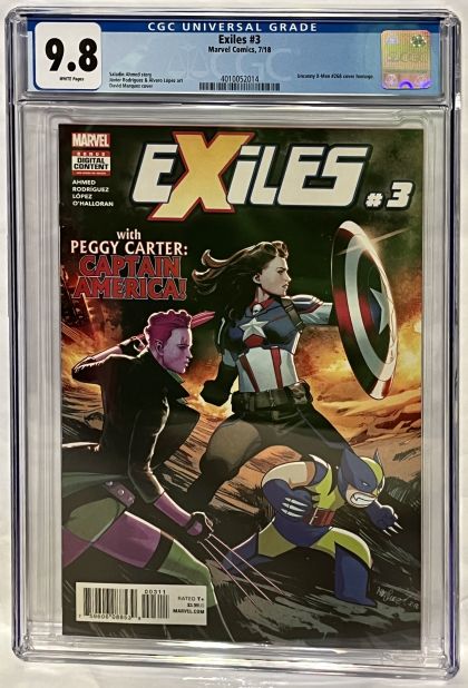 | Grader Notes | CGC Cert # 4010052014 Title Exiles Issue 3 Issue Date 7/18 Issue Year 2018 Publisher Marvel Comics Grade 9.8 Page Quality WHITE Grade Date 11/22/2022 Grade Category Modern Art Comments Saladin Ahmed story Javier Rodrguez & lvaro Lpez art David Marquez cover Key Comments Uncanny X-Men #268 cover homage. Grader Notes Unavailable |