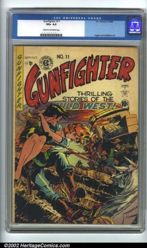 Gunfighter #11 (EC, 1949). CGC VG+ 4.5 Cream to off-white pages. Overstreet 2001 GD 2.0 value = $40; FN 6.0 value = $120.