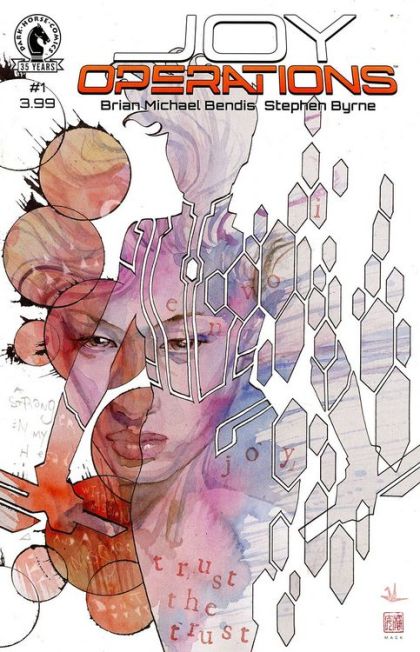 Brian Michael Bendis, the New York Times bestselling and multi-Eisner Award winner, teams up with scorching hot comics sensation Stephen Byrne (Wonder Twins, Legion of Superheroes) for their very first creator-owned blockbuster series. Fifty-five years from now. Joy is an EN·VOI. A special agent of one of the JONANDO TRUST. Trusts are corporate-owned cities that are the centerpiece of modern society. She rights wrongs for the trust. She is excellent. Perfection. Hard on herself. Driven. Almost legendary in some parts. Until one day a voice pops in her head trying to get her to betray everything she has ever believed. All this and also an exclusive look behind-the-scenes and a look forward to other Jinxworld projects coming exclusively to Dark Horse.
