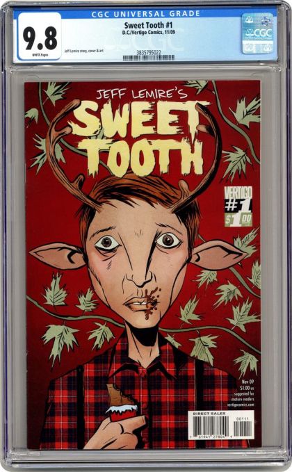 Written by Jeff Lemire Art and cover by Jeff Lemire From out of the deep woods and the mind of acclaimed indie cartoonist Jeff Lemire (THE NOBODY, The Essex County Trilogy) comes a new Vertigo monthly ongoing series like no other! After being raised in total isolation, Gus - a boy born with deer-like antlers - is left to survive in an American landscape devastated a decade earlier by an inexplicable pandemic. Even more remarkable is that Gus is part of a rare new breed of human/animal hybrid children who have emerged in its wake, all apparently immune to the infection. Enter Jepperd, a violent, hulking drifter who soon takes in Gus and promises to lead him to 'The Preserve,' a fabled safe-haven for hybrid children. Along the way they'll have to contend with science militias, deadly scavengers, rival bounty hunters, and hybrid worshipping cultists as they fight to make it to safety and solve the mysteries of this deadly new frontier. This bizarre and haunting new series is boldly written and illustrated by Eisner-nominated creator Jeff Lemire and elegantly colored by fellow Eisner nominee Jose Villarubia. A little boy with antlers, a big man with guns, a world without hope - SWEET TOOTH #1 ships in September for only $1.00! Plus, don't miss a free preview of this title in August's JACK OF FABLES #37! On sale September 2 ? 32 pg, FC, $1.00 US ? MATURE READERS