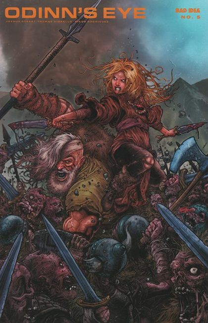Solveig, a young farm girl of great promise, is haunted by visions from the god-king Odinn himself. In words she cannot understand, and images too violent for a child to comprehend, Odinn tasks Solveig with a brutal mission: retrieve his eye — the one he famously traded for wisdom — and bring it to him. In the real world, the winter season has not left the land of Solveig's people for several years. As crops fail and livestock perish, fear and panic grow. In their desperation to appease the gods and free the land of this never-ending winter, the tribe turns to the child whose visions are surely a sign from Odinn. A war party is assembled. Solveig and a band of warriors — including an all-seeing witch — are sent north on a great quest — one which will change all that she knows, all who she has known, and all that she will become. An epic of incredible scope and vision from the minds of Joshua Dysart and Tomas Giorello. Told weekly in 5 parts this December.