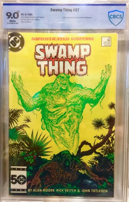 "Growth Patterns!" Written by Alan Moore, with art by Rick Veitch and John Totleben. Cover by Stephen Bissette and Totleben. New "Growth Patterns" and other strange abilities emerge in Swamp Thing as he fights for survival. NOTE: 1st appearance of John Constantine, Hellblazer. Cover price $0.75.
