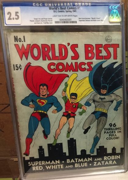 World's Best Comics #1 (DC, 1941) CGC GD+ 2.5 Light tan to off-white pages. Creig Flessel, Paul Gustavson and Bob Kane art. Fred Ray cover. First issue of the comic known thereafter as World's Finest. Overstreet 2015 GD 2.0 value = $1,475.