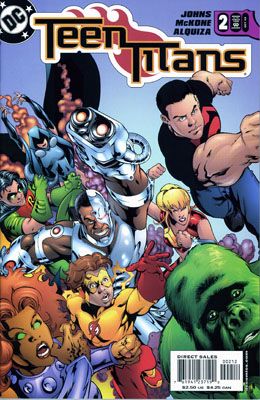 Deathstroke has murdered his faithful attache Wintergreen, and worse yet, as mounted his head on the wall as a trophy! Robin is determined to investigate claims that Superboy was cloned in part from Lex Luthor's DNA. Impulse and Beast Boy duel over who controls the remote. Wonder Girl debates whether there is even a place for her on this team. Then an explosion on Alcatraz Island draws the Titans' interest. They work to help the tourists and control the fire. Inside the old prison, Impulse slows for a minute to think, and is paralyzed by a dart from Deathstroke! He will be Deathstroke's message: kids shouldn't wear costumes. And the punctuation mark for that will be a ruined knee, the result of a a close range blast from Deathstroke's lance.