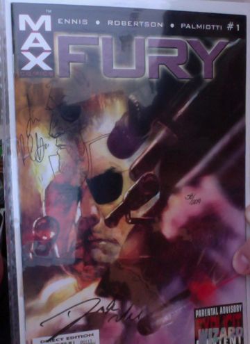 The issue has been signed by both Darrick Robertson and Jimmy Palmiotti. Additionally, it has been re-marked with a head sketch of Nick Fury smoking by Palmiotti!