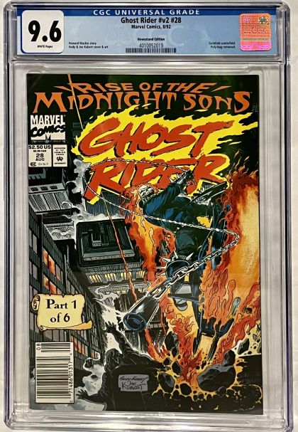 | Grader Notes | CGC Cert # 4010052019 Title Ghost Rider Issue v2 #28 Issue Date 8/92 Issue Year 1992 Publisher Marvel Comics Grade 9.6 Page Quality WHITE Grade Date 11/22/2022 Grade Category Modern Pedigree Newsstand Edition Art Comments Howard Mackie story Andy & Joe Kubert cover & art Key Comments Gatefold centerfold. Poly-bag removed. Grader Notes Unavailable |