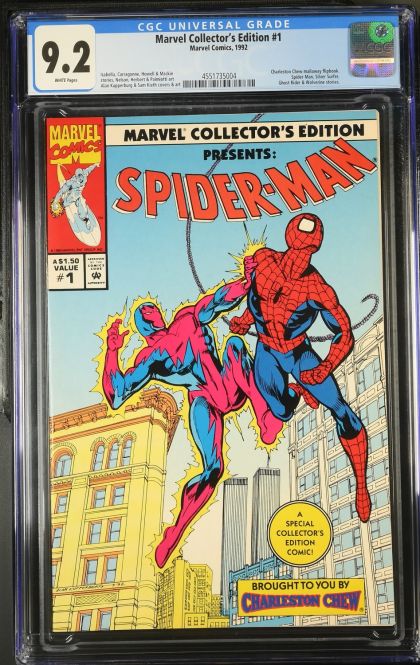 | Grader Notes | CGC Cert # 4551735004 Title Marvel Collector's Edition Issue 1 Issue Date 1992 Issue Year 1992 Publisher Marvel Comics Grade 9.2 Page Quality WHITE Grade Date 2025-04-03 Grade Category Modern Art Comments Isabella, Carragonne, Howell & Mackie stories, Nelson, Herbert & Palmiotti art Alan Kupperburg & Sam Kieth covers & art Key Comments Charleston Chew mailaway flipbook. Spider-Man, Silver Surfer, Ghost Rider & Wolverine stories. Grader Notes spine stress lines cover crease right bottom of back cover |
