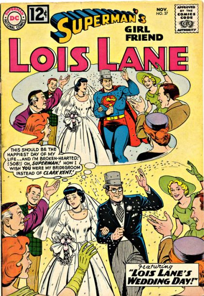 "Lois Lane's Wedding Day!": Investigating a phony sweethearts' club, Lois arranges to marry Clark Kent, believing the ceremony will be conducted by a phony minister. Unfortunately for her, the club's owner has learned of her true identity, and has hired a real reverend to do the nuptials. Thus, Lois and Clark are convinced that they are, in truth, married. On their honeymoon train, Clark tries to convince Lois that he is really Superman, but fate conspires against him in his attempts to show his super-powers. Finally, Lois realizes that the marriage is not valid, since the license was made under assumed names. Clark and Lois return to the Planet, where Perry and Jimmy tell them that the testimony of one of the club owner's confederates has landed the owner in jail.