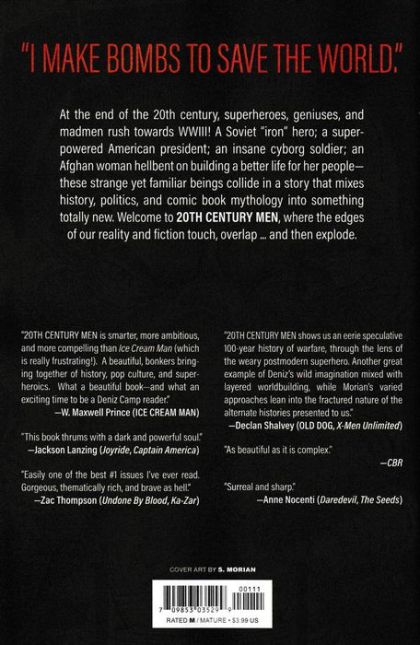 At the end of the 20th century, superheroes, geniuses, madmen, and activists rush towards WWIII! A Soviet "iron" hero, a superpowered American president, an insane cyborg soldier, an Afghan woman hellbent on building a better life for her people-these strange yet familiar beings collide in a story that mixes history, politics, and comic book mythology into something totally new. Welcome to 20TH CENTURY MEN, where the edges of our reality and fiction touch, overlap...and then explode.