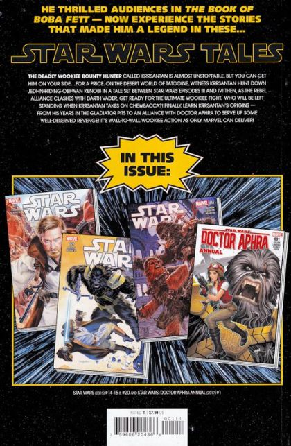 He thrilled audiences in The Book of Boba Fett - now experience the stories that made him a legend! The deadly Wookiee bounty hunter called Krrsantan is almost unstoppable, but you can get him on your side...for a price. On the desert world of Tatooine, witness Krrsantan hunt down Jedi-in-hiding Obi-Wan Kenobi in a tale set between Star Wars Episodes III & IV! Then, as the Rebel Alliance clashes with Darth Vader, get ready for the ultimate Wookiee fight. Who will be left standing when Krrsantan takes on Chewbacca?! Finally, learn Krrsantan's origins - from his years in the gladiator pits to an alliance with Doctor Aphra to serve up some well-deserved revenge! It's wall-to-wall Wookiee action as only Marvel can deliver! Collecting STAR WARS (2015) #14-15 and #20 and STAR WARS: DOCTOR APHRA ANNUAL #1. RATED T