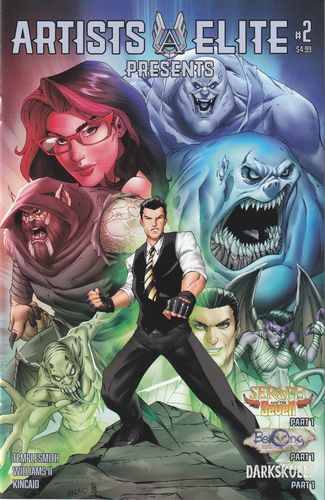 Artists Elite Presents #2 features the premiere of 3 new stories! Ben Templesmith's (30 Days of Night) Darkskulls where five weary and jaded immortals tied to the life-force of the planet might bother to come together to save it one last time. Freddie Williams II's (Batman/TMNT) Belong tells how a lonely, quiet, creative kid finds the family he's always wanted by eagerly paying everything for it. Ryan Kincaid's (Cover Artist) Seraph and the Seven questions if sending one of the original angels will be enough to save humanity from the Seven Deadly Sins!