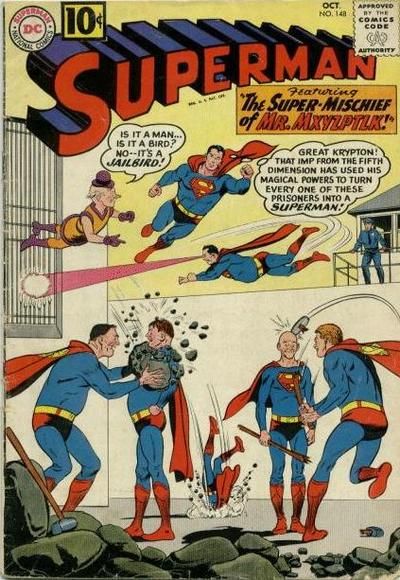 "Mr. Mxyzptlk's Super Mischief" - Mr. Mxyzptlk comes up with a new dastardly plan: he legally changes his name so that Superman won't be able to get him to say it backwards. He then returns to Earth to have a bit of fun.