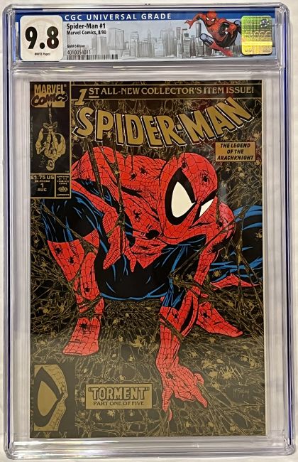 | Grader Notes | 2nd Prnt, Gold Edition CGC Cert # 4010054011 Title Spider-Man Issue 1 Issue Date 8/90 Issue Year 1990 Publisher Marvel Comics Variant Gold Edition Grade 9.8 Page Quality WHITE Grade Date 11/02/2022 Grade Category Modern Art Comments Todd McFarlane story, cover & art Key Comments Lizard appearance. Indicia states ""Second Printing"". |