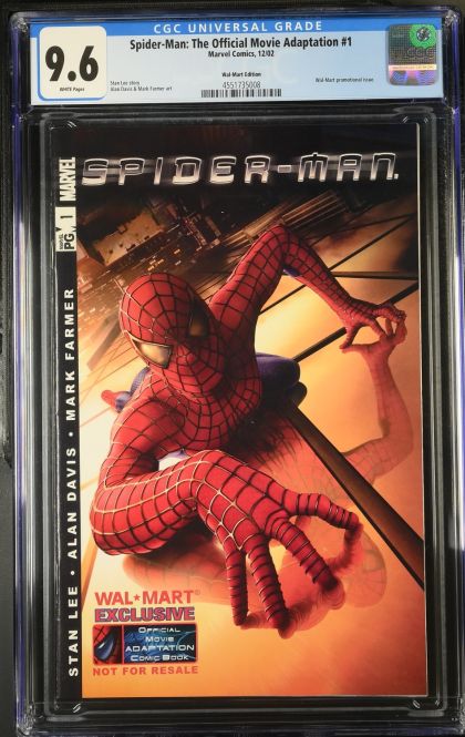 | Grader Notes | CGC Cert # 4551735008 Title Spider-Man: The Official Movie Adaptation Issue 1 Issue Date 12/02 Issue Year 2002 Publisher Marvel Comics Variant Wal-Mart Edition Grade 9.6 Page Quality WHITE Grade Date 2025-04-03 Label Category Universal Art Comments Stan Lee story Alan Davis & Mark Farmer art Key Comments Wal-Mart promotional issue. Grader Notes spine stress lines cover |